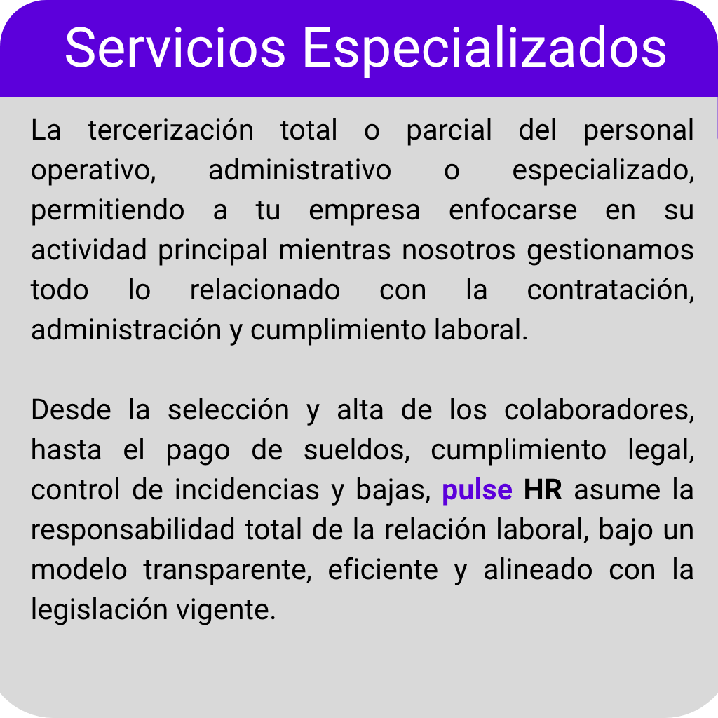 Avalados por la STPS a través del REPSE y respaldados internacionalmente por pulse HR dando certeza jurídica, financiera operativa e innovación en las soluciones sólidas que brindamos en México.
